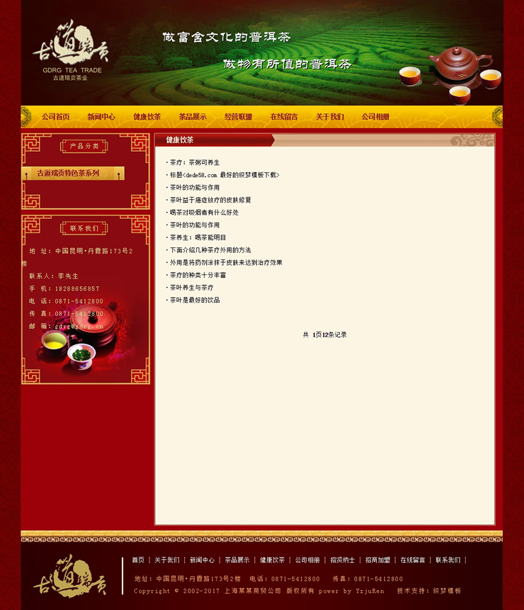 模板編號(hào):     B1710 織夢(mèng)紅色大氣茶類(lèi)企業(yè)整站模板