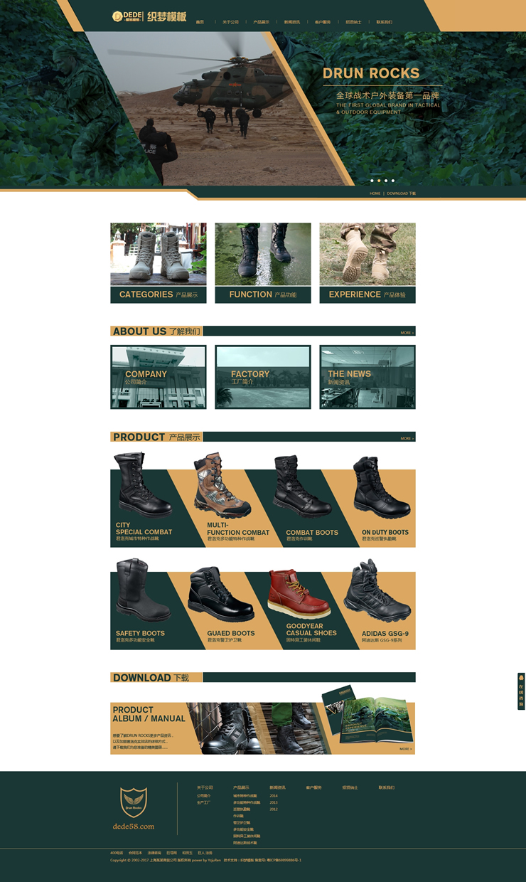 主頁 > 網(wǎng)站建設(shè) > 網(wǎng)站模板 > 酒類、食品、服飾、服務(wù) > 軍綠色品牌鞋業(yè)鞋類行業(yè)公司織夢模板