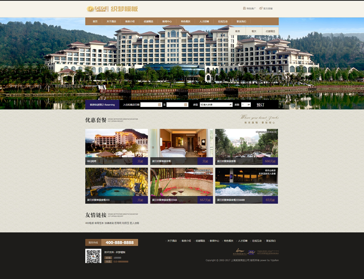 大氣賓館星級(jí)酒店餐飲咖啡廳網(wǎng)站織夢(mèng)模板