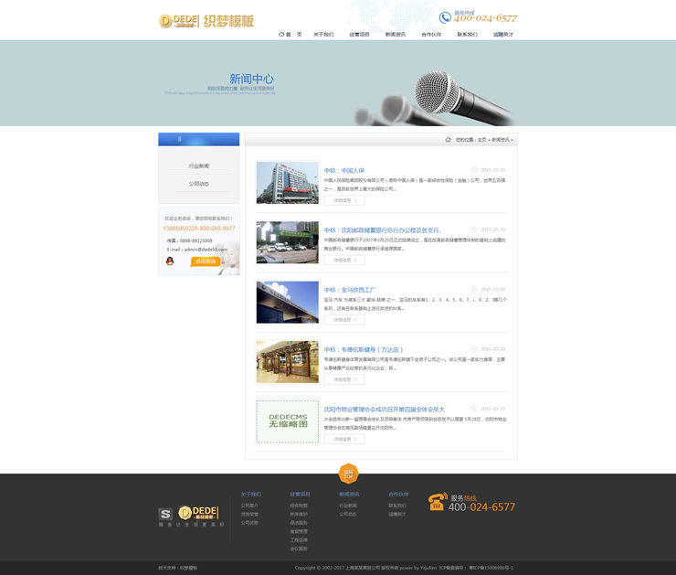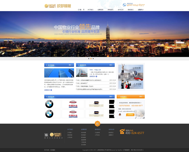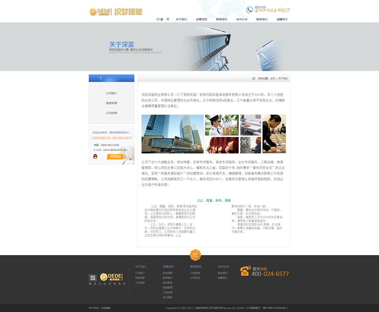 改版藍(lán)色物業(yè)類企業(yè)公司網(wǎng)站織夢模板