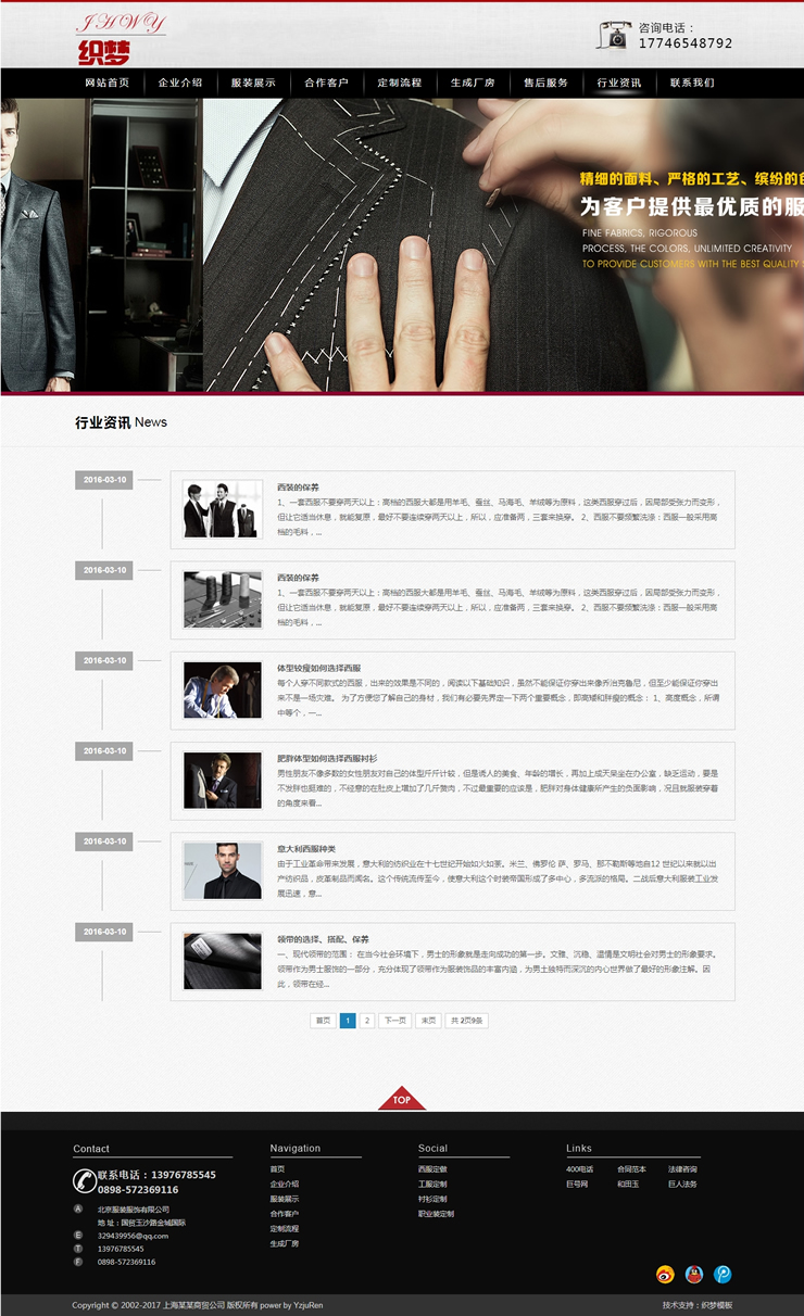 服裝職業(yè)服飾面料類企業(yè)網(wǎng)站織夢模板