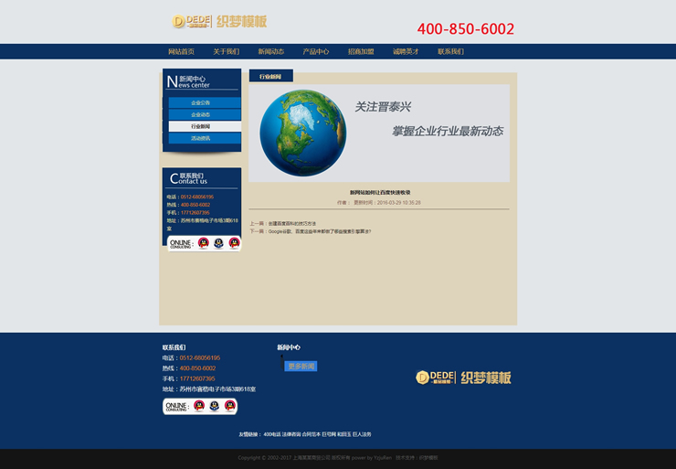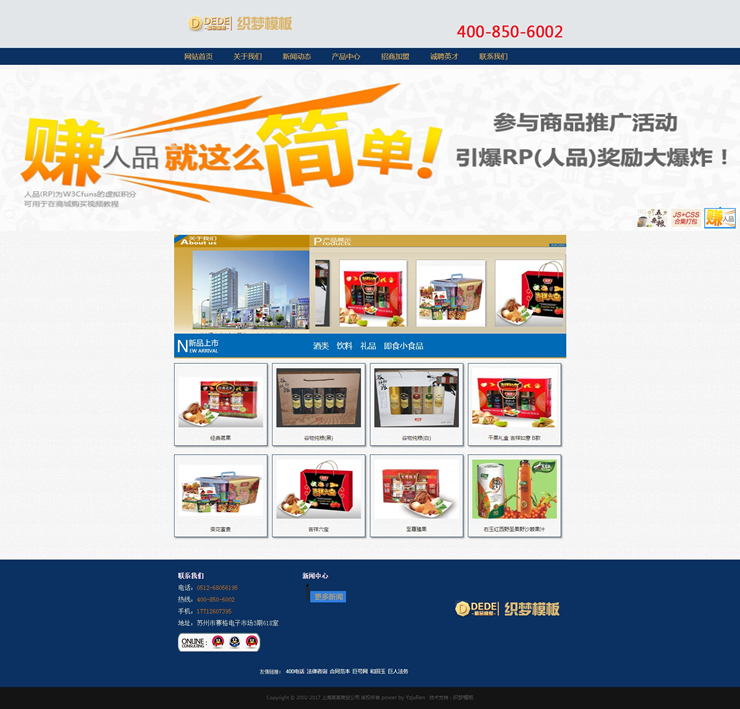 模板編號:     B1897 藍色食品商貿公司類網(wǎng)站dedecms模板