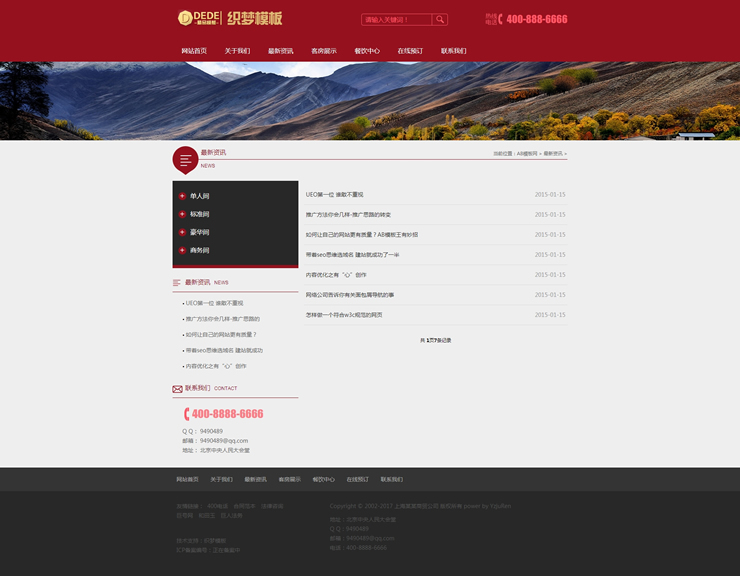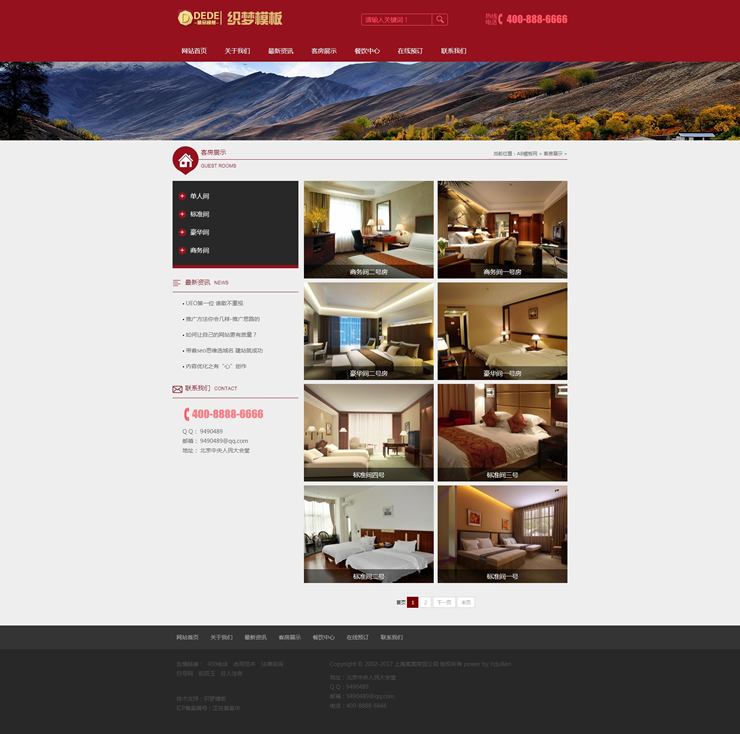 模板編號:     B1909 一款紅色酒店旅館網(wǎng)站源碼織夢餐飲酒店通用網(wǎng)