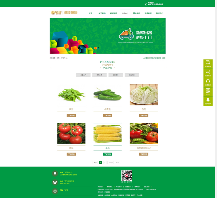 主頁 > 網(wǎng)站建設(shè) > 網(wǎng)站模板 > 酒類、食品、服飾、服務(wù) > 綠色蔬菜類網(wǎng)站源碼 水果類企業(yè)織夢模板(帶手