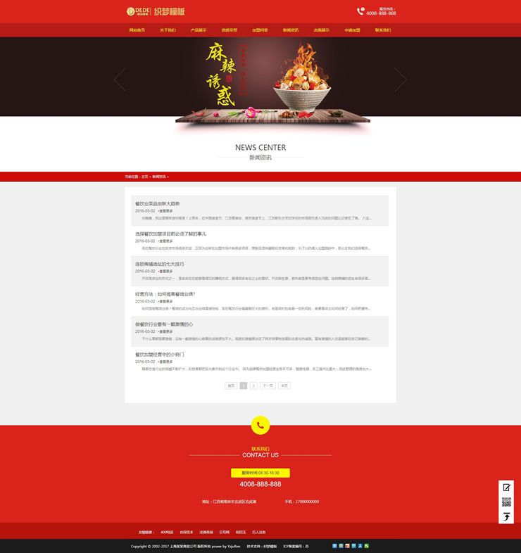 紅色風(fēng)格食品飯店類(lèi)企業(yè)網(wǎng)站織夢(mèng)整站模板源碼