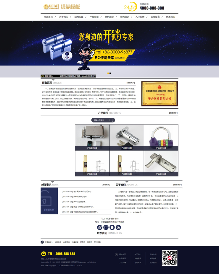 模板編號:     B2092 藍(lán)黑風(fēng)格生活服務(wù)行業(yè)網(wǎng)站源碼 家政開鎖織夢模