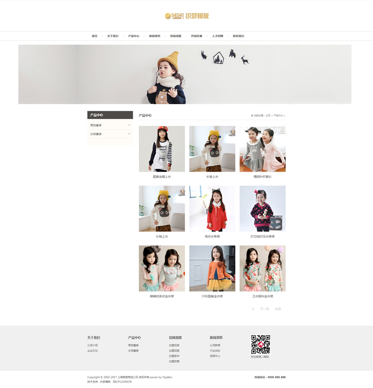 模板編號:     B2114 響應式童裝服裝類dedecms織夢模板兒童服飾類網站