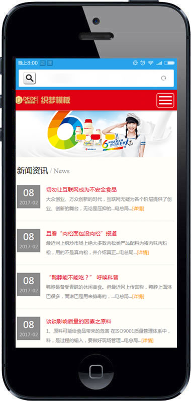 模板編號:     B2232 紅色大氣食品飲料織夢網(wǎng)站源碼響應式日化用品