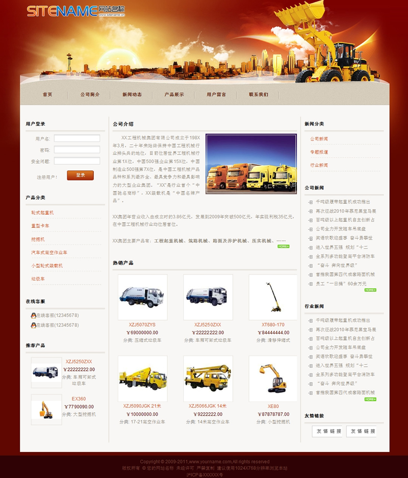 模板編號:     S1006 紅色機械類工業(yè)制品通用建站模板