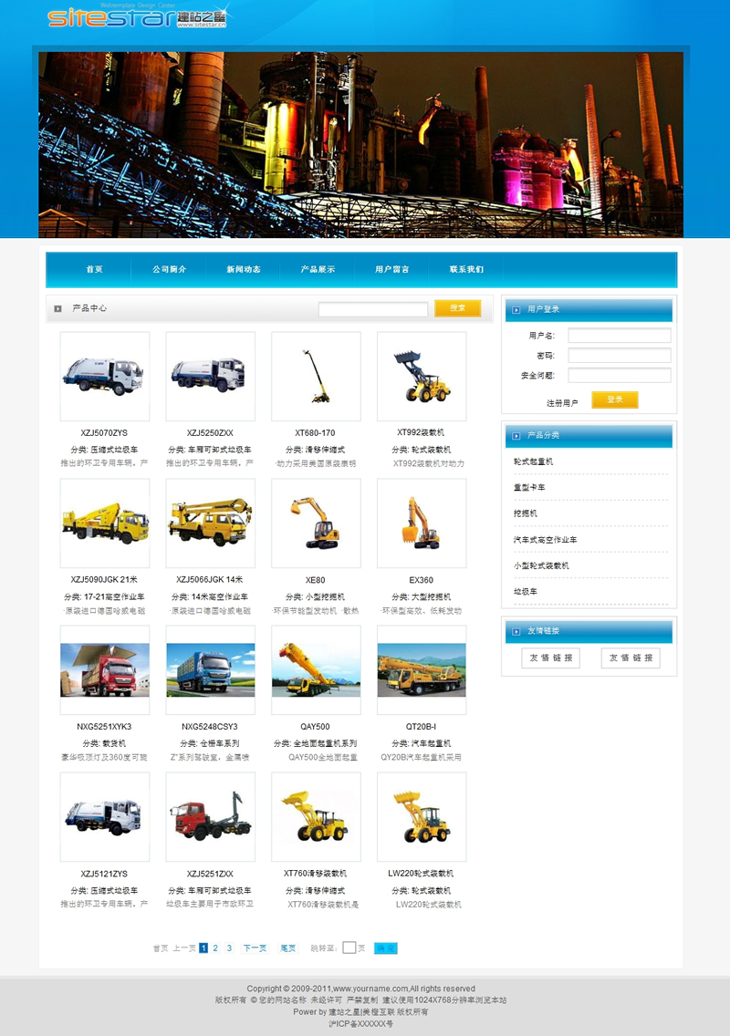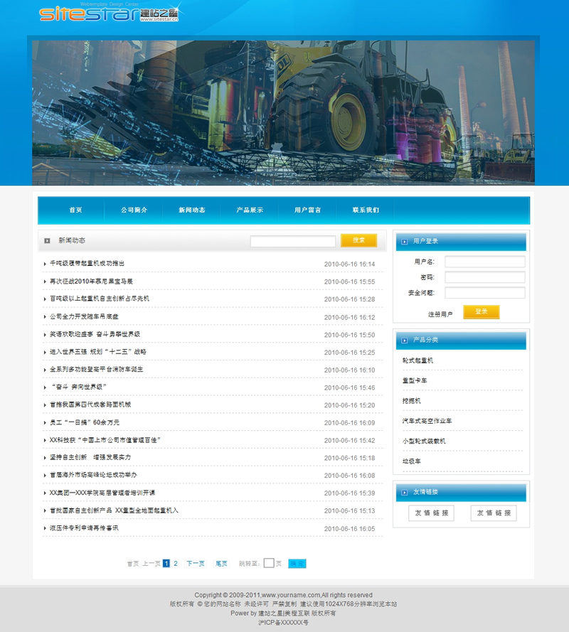 主頁 > 網(wǎng)站建設(shè) > 網(wǎng)站模板 > 機(jī)械、電子、商務(wù)、文教 > 經(jīng)典機(jī)械產(chǎn)品類通用型公司建站模板