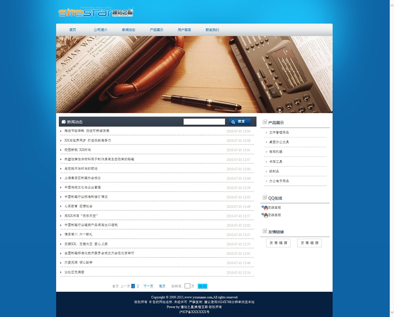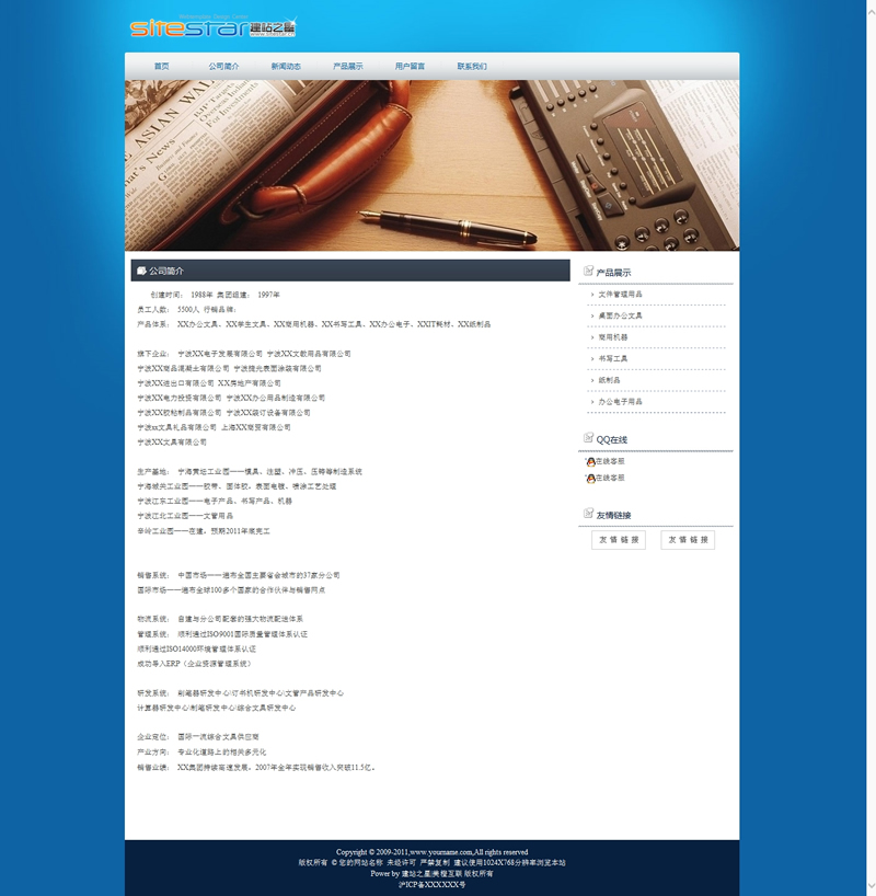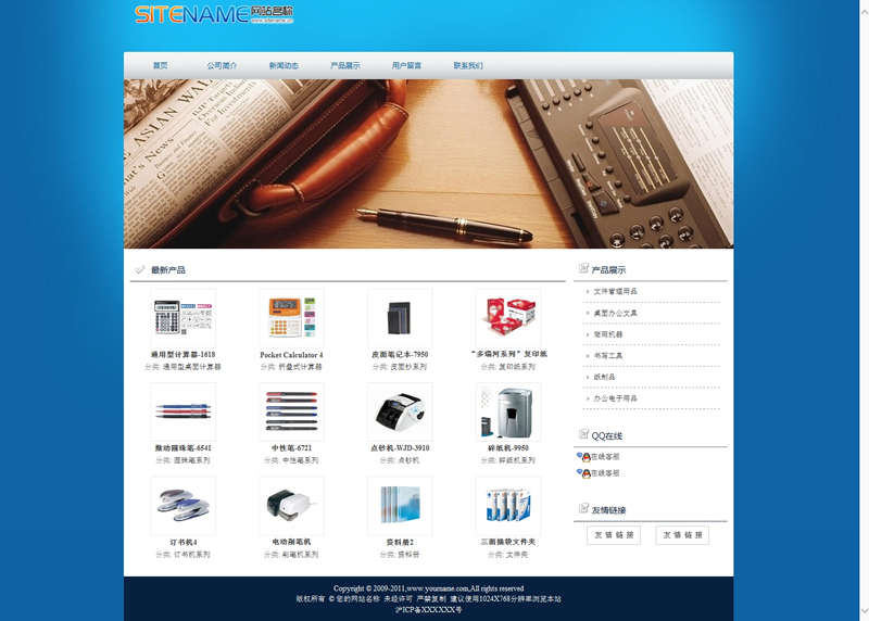 模板編號(hào):     S1060 辦公用具常用文化用品類產(chǎn)品建站模板