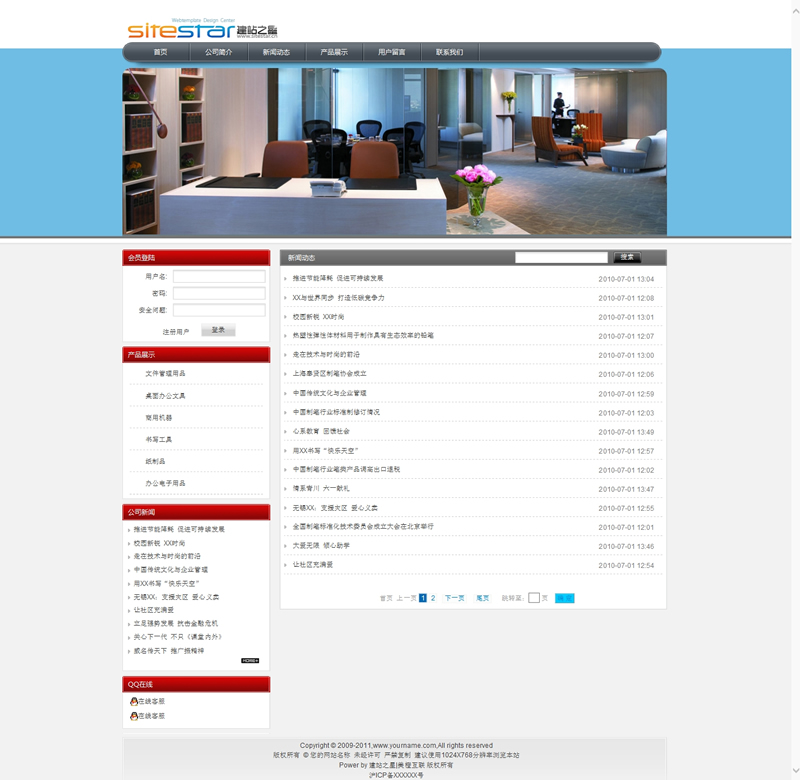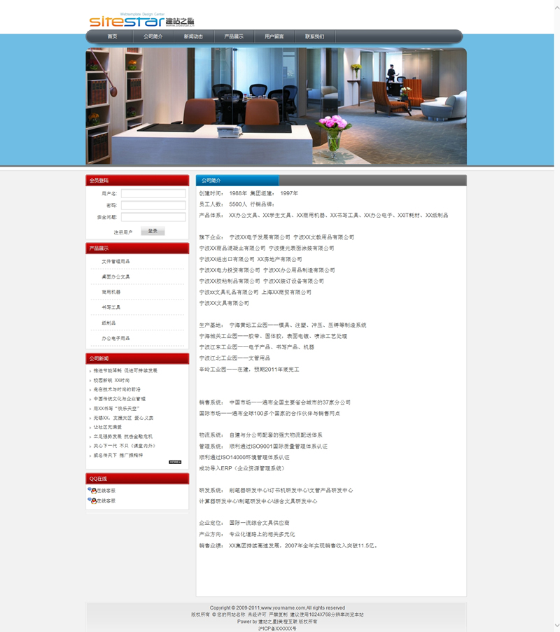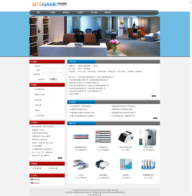 辦公型網(wǎng)站及相關(guān)文具用品建站模板