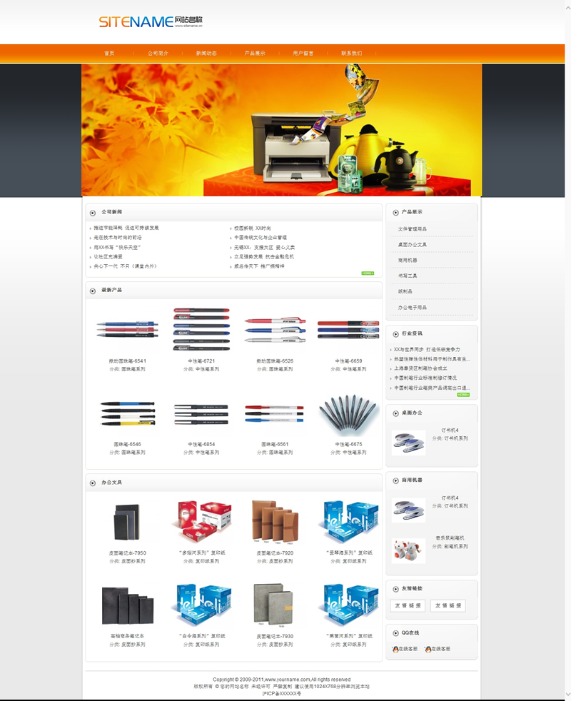 模板編號:     S1230 高檔辦公易損耗材IT辦公用品建站平臺