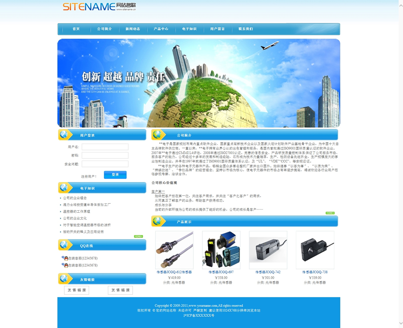 模板編號(hào):     S1391 電子管電子器材各種配件公司建站模板