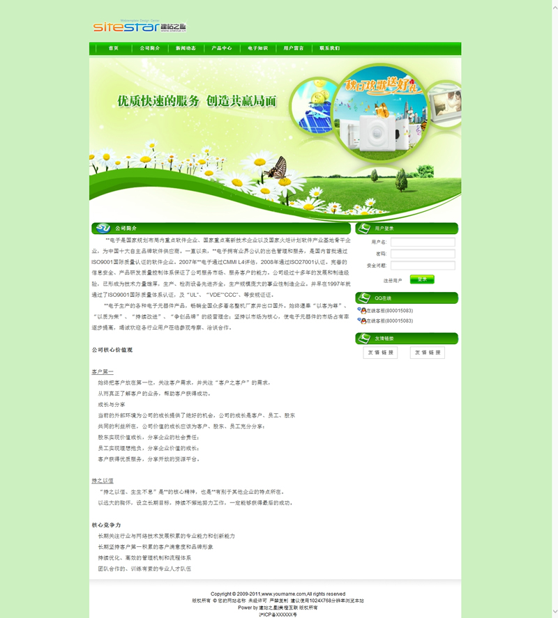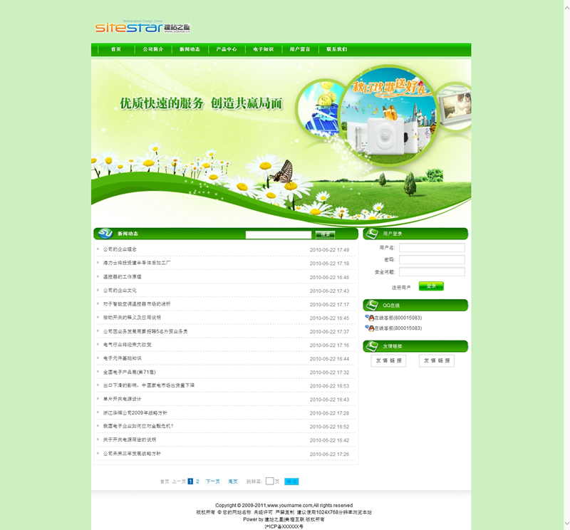 一、整套模板純手寫div+css代碼,符合W3C標(biāo)準(zhǔn),完美兼容 IE6/7/8/9/10、Firefox、Chrome、Opera、Safari、360瀏覽器等主流瀏覽器,經(jīng)測試無錯位,加載速度飛快。
