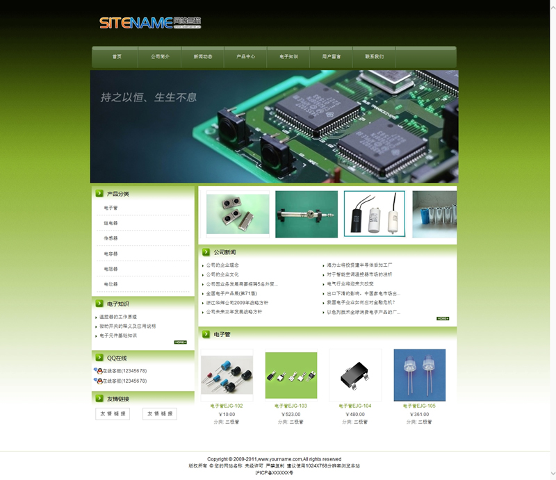 模板編號(hào):     S1405 電子管電容器電位器等電子產(chǎn)品建站模板