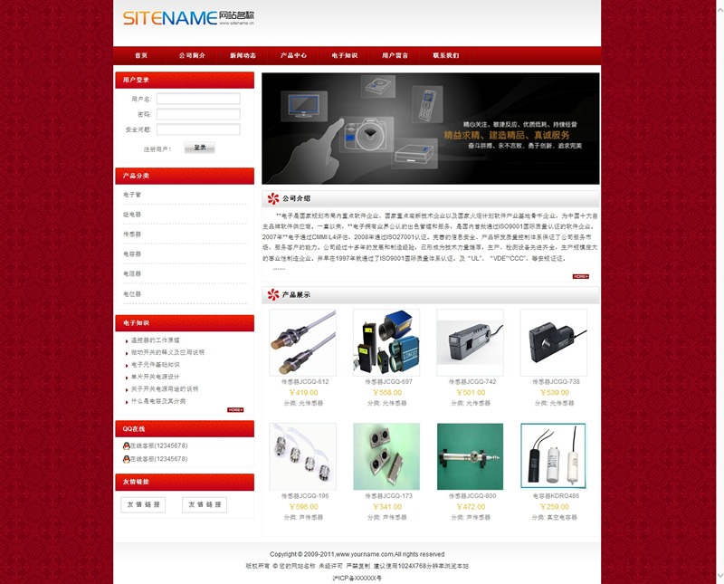 模板編號:     S1406 電子工業(yè)產(chǎn)品機械化電子公司建站模板