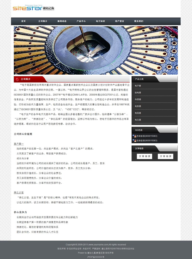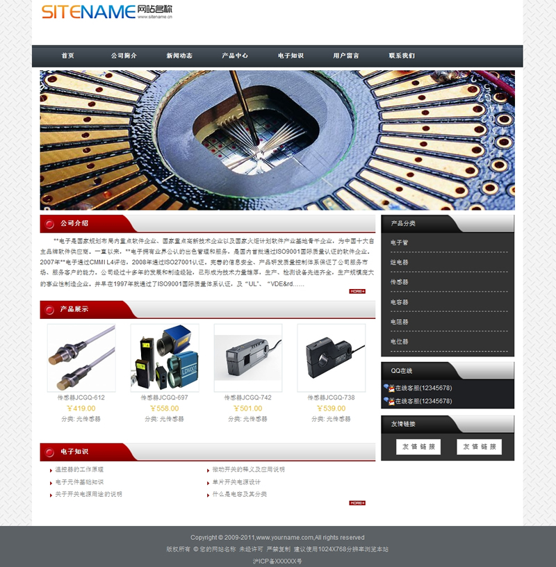 模板編號:     S1412 電子科技元件電容電阻配件建站模板
