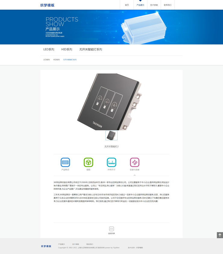 模板編號:     B1618 響應(yīng)式電子智能開關(guān)類企業(yè)網(wǎng)站織夢模板(自適應(yīng)