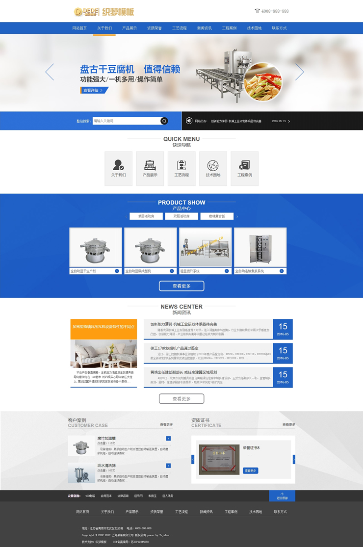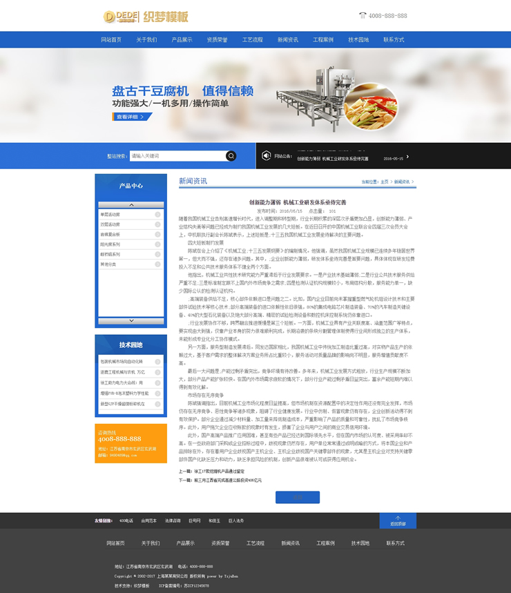 模板編號:     B2000 藍色機械設備產(chǎn)品類網(wǎng)站源碼織夢模板(帶手機