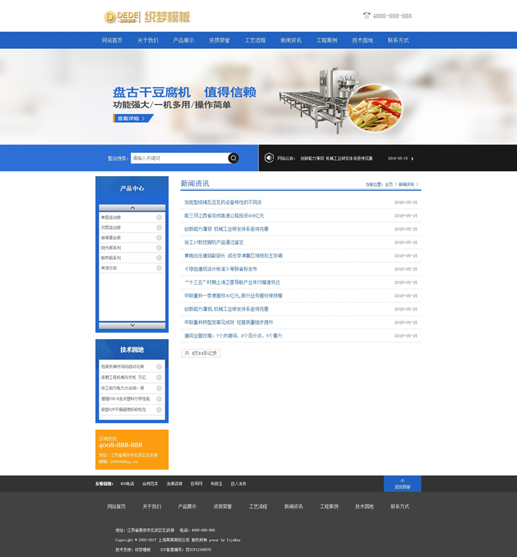 主頁 > 網(wǎng)站建設 > 網(wǎng)站模板 > 機械、電子、商務、文教 > 藍色機械設備產(chǎn)品類網(wǎng)站源碼織夢模板(帶手機