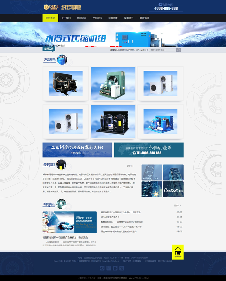 模板編號:     B2018 藍色制冷機械設(shè)備織夢網(wǎng)站源碼dedecms模板(帶手機