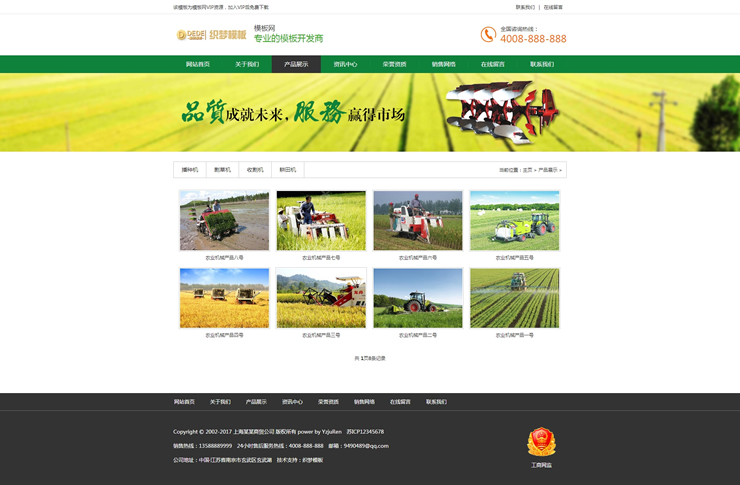 綠色農(nóng)機(jī)產(chǎn)品機(jī)械企業(yè)網(wǎng)站模板織夢農(nóng)業(yè)企業(yè)源