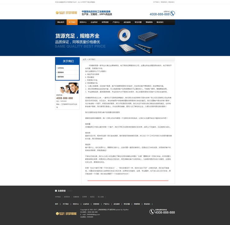 主頁 > 網(wǎng)站建設(shè) > 網(wǎng)站模板 > 機(jī)械、電子、商務(wù)、文教 > 藍(lán)色織夢大氣機(jī)械電子營銷類網(wǎng)站dedecms模板