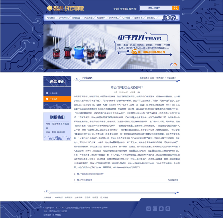 模板編號:     B2083 電子機械設(shè)備行業(yè)網(wǎng)站源碼五金零部件織夢模板