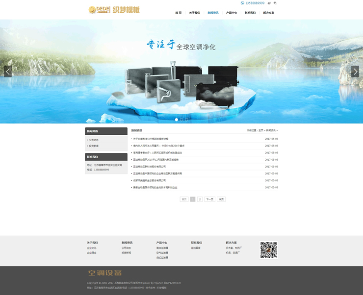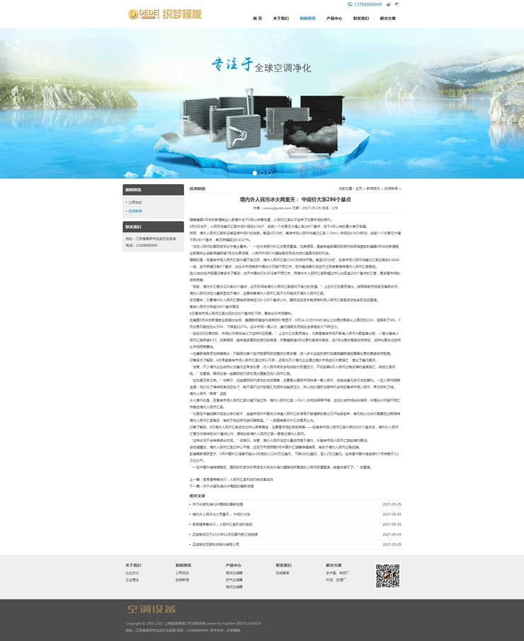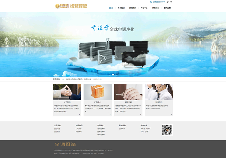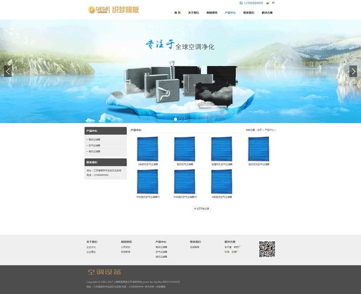 模板編號:     B2213 空調(diào)空氣過濾設(shè)備織夢模板空氣凈化器設(shè)備網(wǎng)站