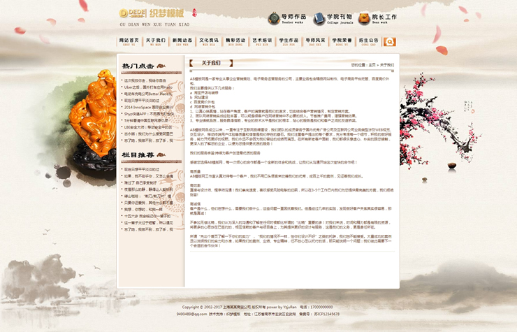 模板編號:     B2305 古典文學(xué)古玩收藏類織夢網(wǎng)站源碼文學(xué)院校類網(wǎng)