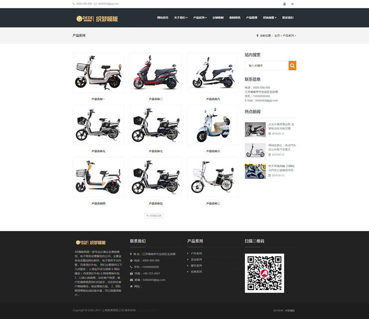 響應(yīng)式電動(dòng)自行車(chē)踏板車(chē)類(lèi)網(wǎng)站織夢(mèng)模板HTML5電動(dòng)