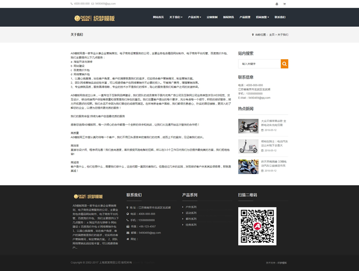 模板編號(hào):     B2351 響應(yīng)式電動(dòng)自行車(chē)踏板車(chē)類(lèi)網(wǎng)站織夢(mèng)模板HTML5電動(dòng)