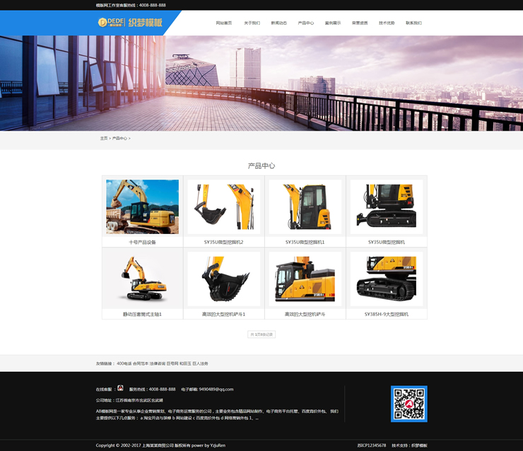 模板編號:     B2426 響應(yīng)式工程機械挖掘機類網(wǎng)站織夢模板HTML5戶外大