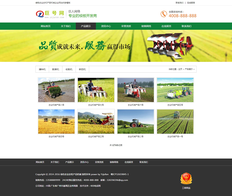 綠色農(nóng)業(yè)農(nóng)機(jī)產(chǎn)品機(jī)械企業(yè)織夢(mèng)網(wǎng)站模板