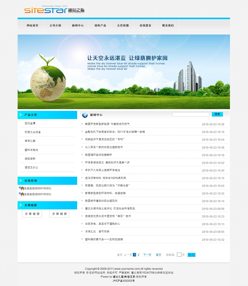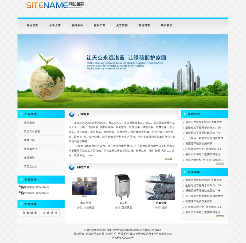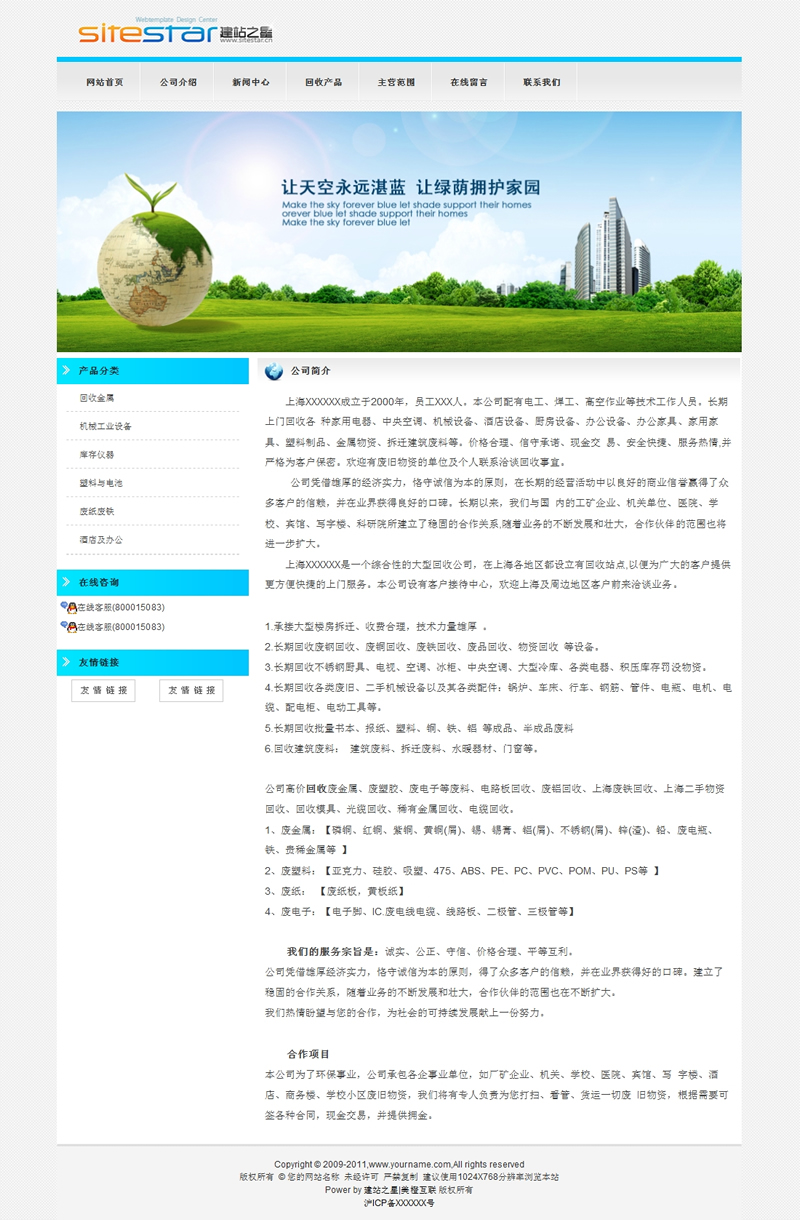 模板編號(hào):     S1160 廢品廢料公司環(huán)保新能源公司建站模板