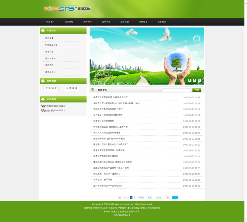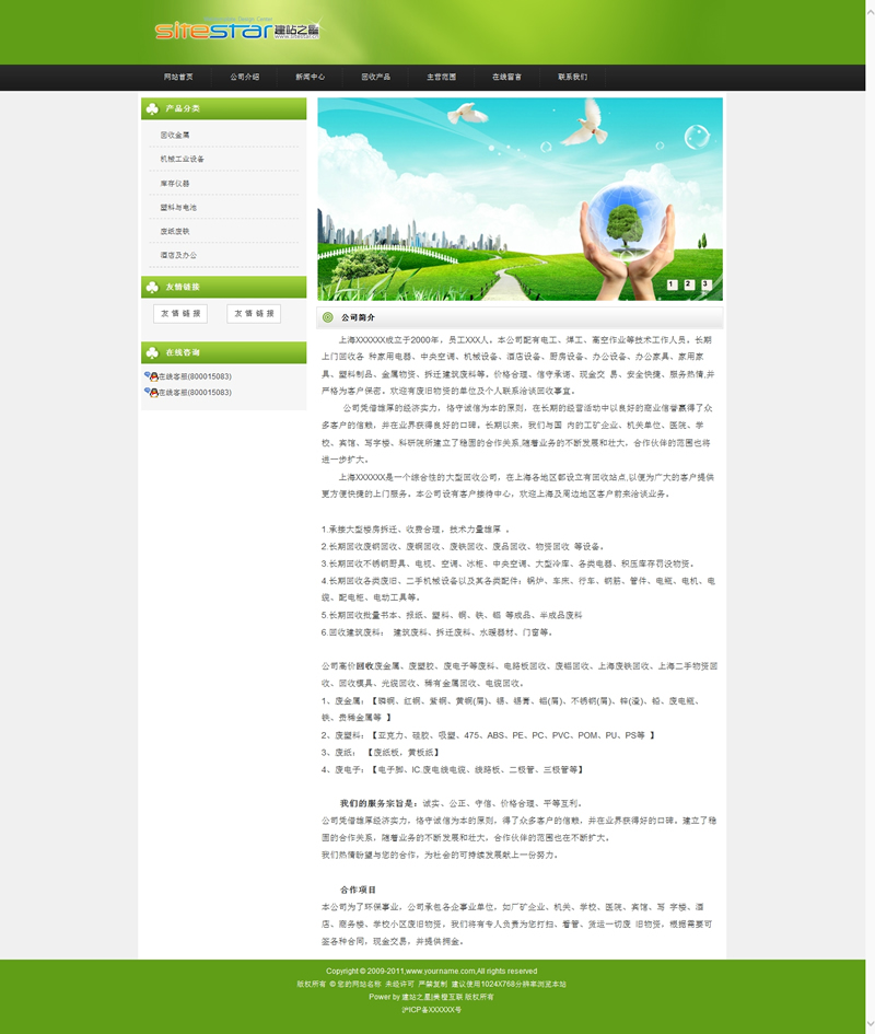 模板編號:     S1162 節(jié)能環(huán)保型企業(yè)資源公司回收回公司建站模板