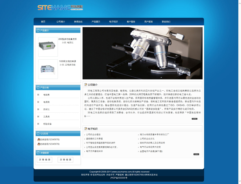 模板編號:     S1455 工業(yè)電器產(chǎn)品各類電子器材公司建站模板
