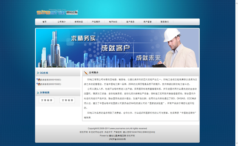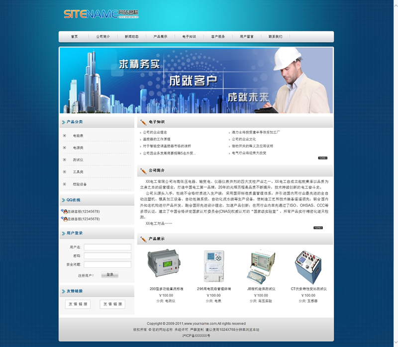 模板編號(hào):     S1460 電器電力工業(yè)電子工程公司建站模板