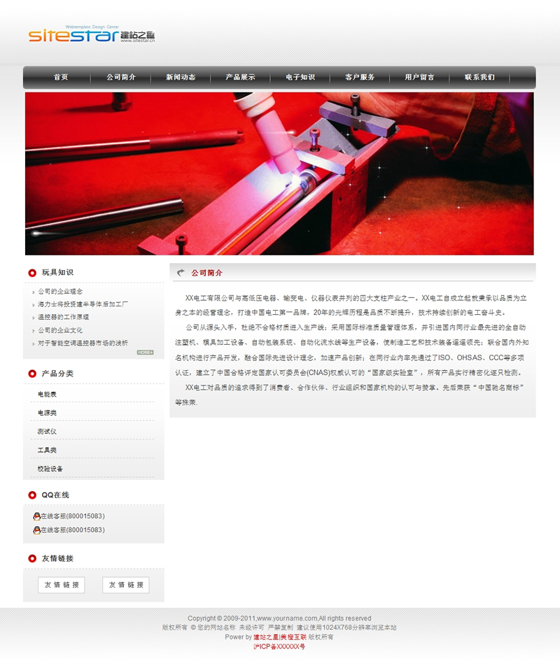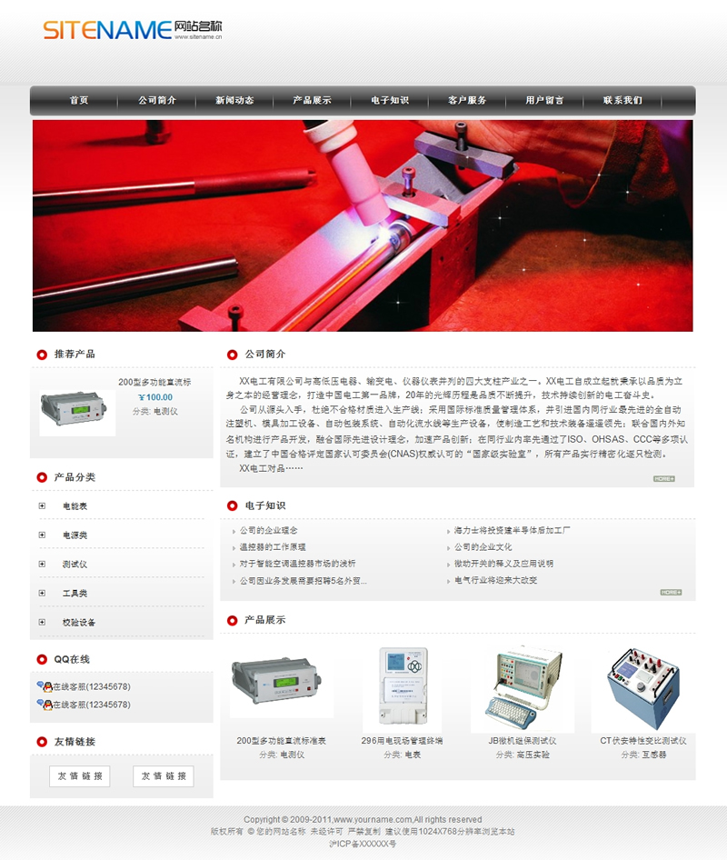模板編號:     S1461 電力配件電器元件阻件電力設(shè)備建站模板