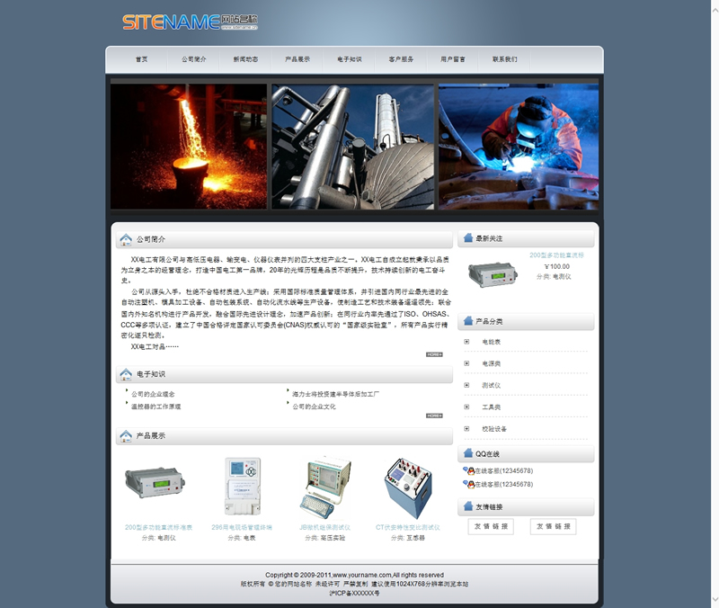 模板編號(hào):     S1463 各種電子原件配件器材電力工具公司建站模板
