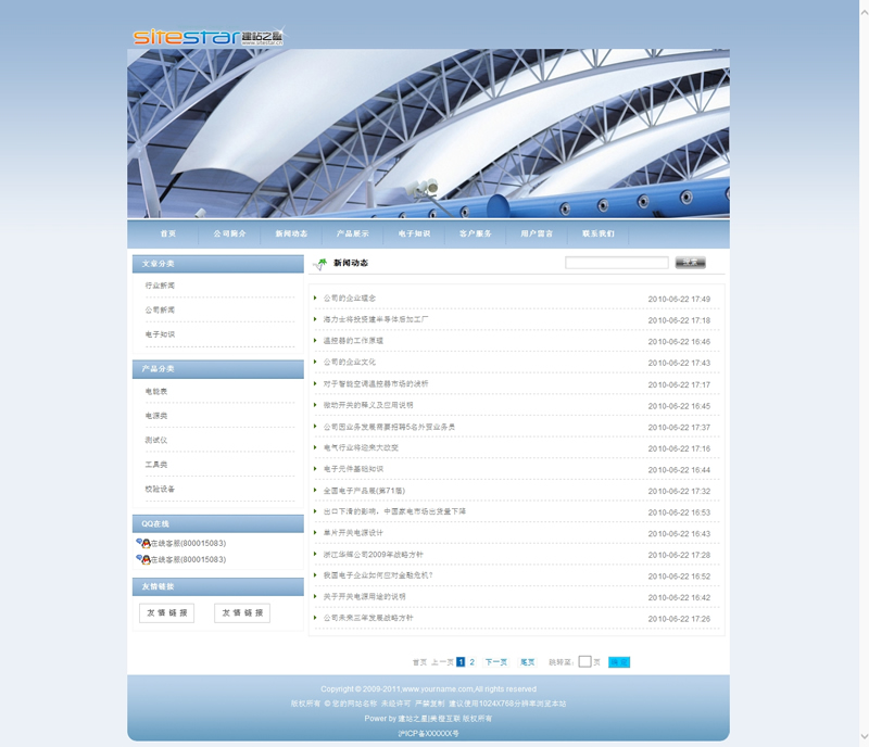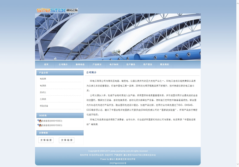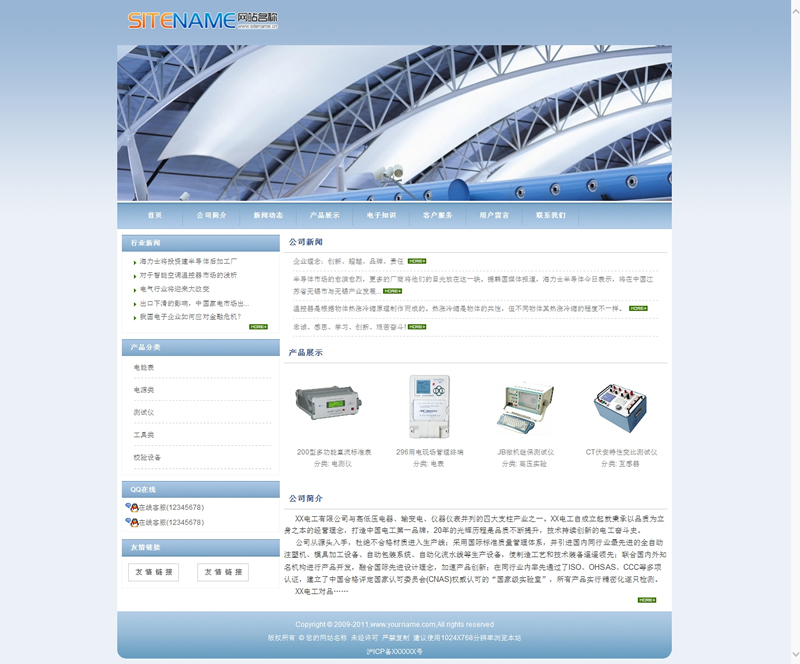 模板編號(hào):     S1476 淡藍(lán)色輕工業(yè)產(chǎn)品電子電器產(chǎn)品公司建站模板