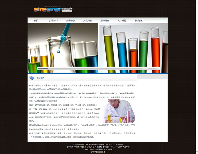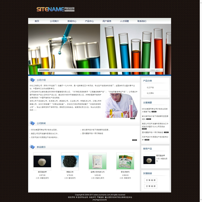 模板編號:     S1484 化工企業(yè)各種原料試驗用品企業(yè)建站程序