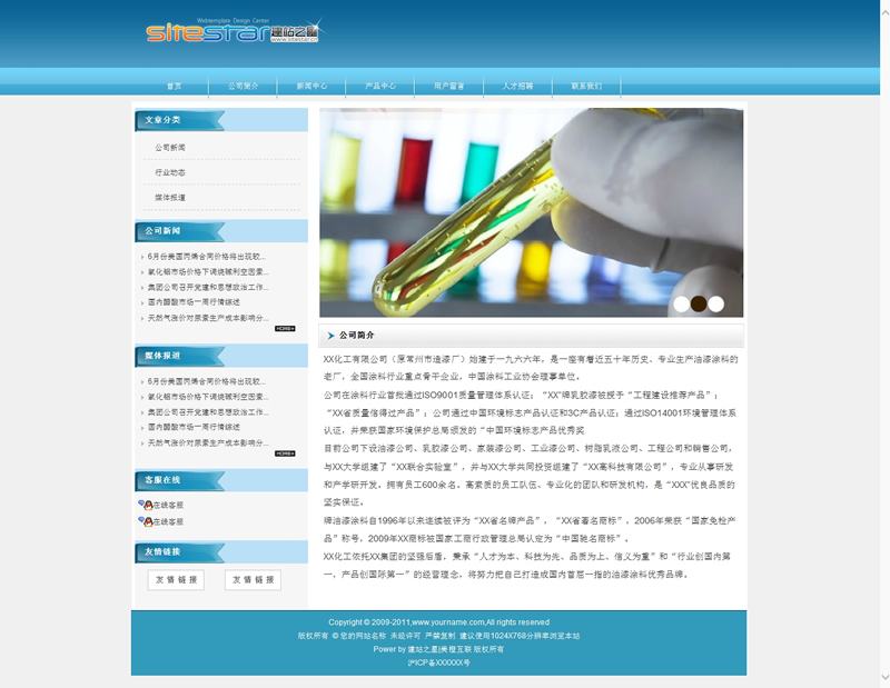 模板編號:     S1488 特殊化工廠化學(xué)原為用品生產(chǎn)銷售企業(yè)建站系統(tǒng)
