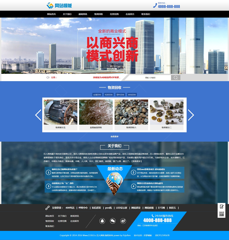模板編號(hào):     B1456 織夢(mèng)工業(yè)回收物資加工產(chǎn)品展示網(wǎng)站模板(帶手