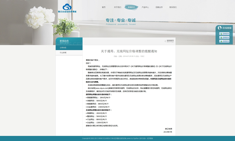二、本模板可免費提供給廣大建站愛好者學習使用,但不提供任何形式的咨詢解答服務。為了尊重本公司的設計成果,請使用模板時添加本站網(wǎng)址為友情鏈接,否則本站將追究其版權使用的權限。