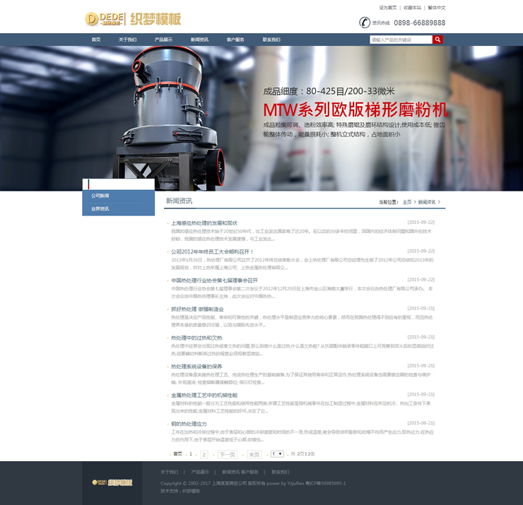 主頁 > 網(wǎng)站建設(shè) > 網(wǎng)站模板 > 農(nóng)業(yè)、工業(yè)、五金、通用 > 工業(yè)機(jī)械設(shè)備企業(yè)公司網(wǎng)站織夢模板