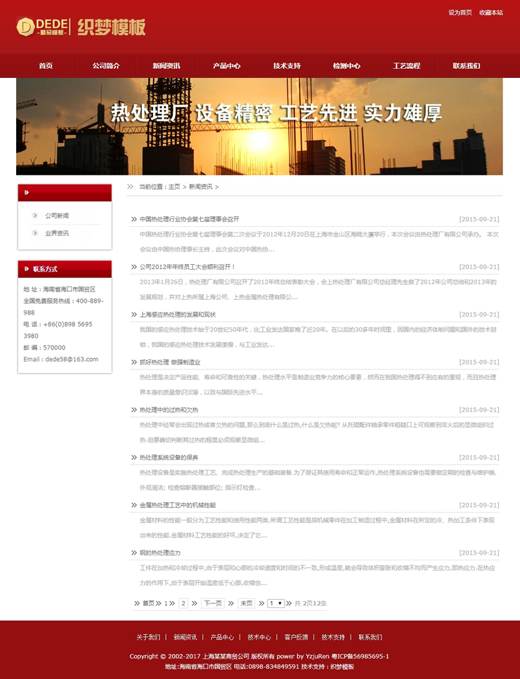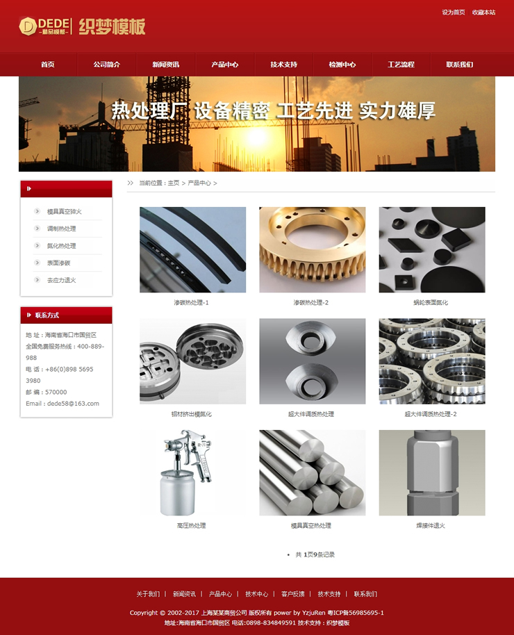主頁 > 網站建設 > 網站模板 > 農業(yè)、工業(yè)、五金、通用 > 紅色工業(yè)機械熱處理企業(yè)網站織夢模板