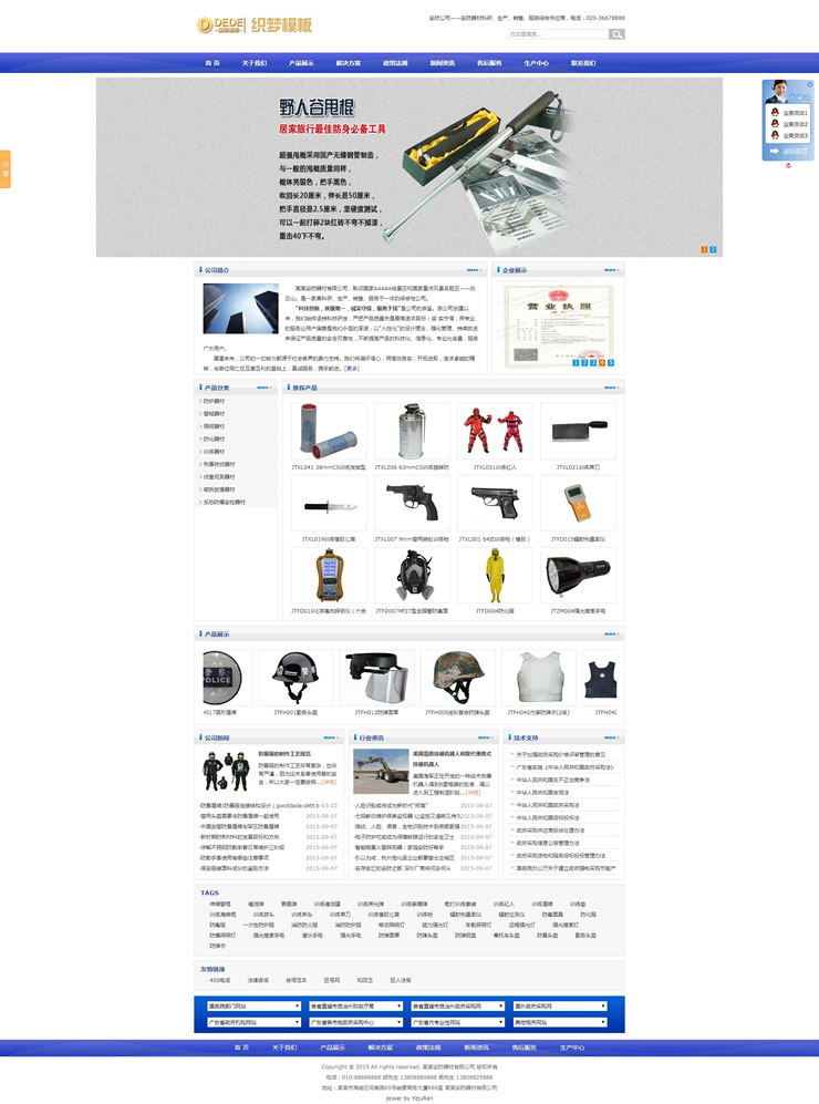 模板編號:     B1826 藍色安防器材公司類整站模板