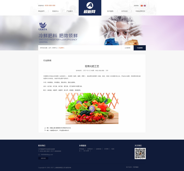 主頁 > 網(wǎng)站建設(shè) > 網(wǎng)站模板 > 農(nóng)業(yè)、工業(yè)、五金、通用 > 響應式冷鮮化肥農(nóng)業(yè)類網(wǎng)站源碼 html5化工化學類